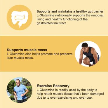 L-Glutamine nutritionally supports the mucosal lining and healthy functioning of the gastrointestinal tract.