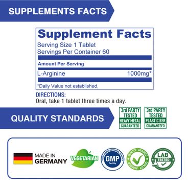 Lovita offers this vegan L-Arginine supplement in 1500 milligrams tablets.