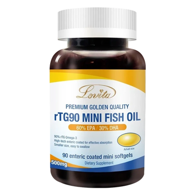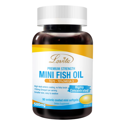 Our Mini Fish Oil comes in small size while delivering the high potency possible. Each serving (2 softgels) contains 1,000mg fish oil with 900mg of Omega-3 Fatty Acids (600mg EPA, 300mg DHA). The absorption ability has risen up with the purity Omega-3 ratio.