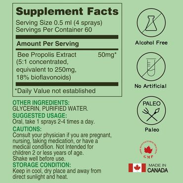 【HIGH CONCENTRATION】Our propolis liquid are 5:1 highly concentrated. It possesses 18% bioflavonoids which offer benefits support immune health.