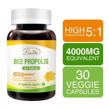 Lovita Propolis Extract is 5:1 concentrated and possesses a variety of naturally occurring bioflavonoids. It delivers the equivalent of 4000 mg of Bee Propolis in a Quick-Release vegetarian capsule. Don’t settle for other capsules or pills that only offer 1000mg of Bee Propolis per dose.