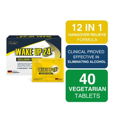 Wake Up 24 is the pills for hangover preventing. Designed to boost your body’s natural response to alcohol, restore vital nutrients, and help you feel better after drinking.