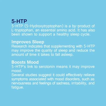 5-HTP (5-Hydroxytryptophan) is a by-product of L-tryptophan, an essential amino acid. It has also been shown to support a healthy sleep cycle.