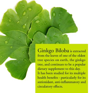 Ginkgo biloba is extracted from the leaves of one of the oldest tree species on earth, the ginkgo tree, and continues to be a popular dietary supplement to this day. It has been studied for its multiple health benefits - particularly for its antioxidant, anti-inflammatory and circulatory effects.