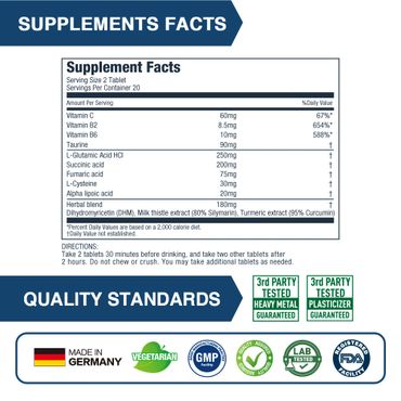 Main ingredients are natural antioxidants- DHM, Milk Thistle, Turmeric Extract, Alpha Lipoic Acid. With these ingredients, it can help reduce the buildup of acetaldehyde.