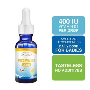 Baby’s vitamin D liquid is easy to take, and provides optimal potency and absorption. In a liquid form, it provides all the benefits of vitamin D without the risk of unprotected exposure to UVB rays.