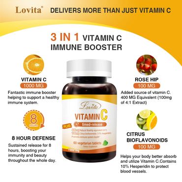 Fight off free radicals in your body with an antioxidant boost from Lovita vitamin C. Add Rose Hips and Citrus Bioflavonoids and you’ve got an immunity boosting, antioxidant powerhouse!